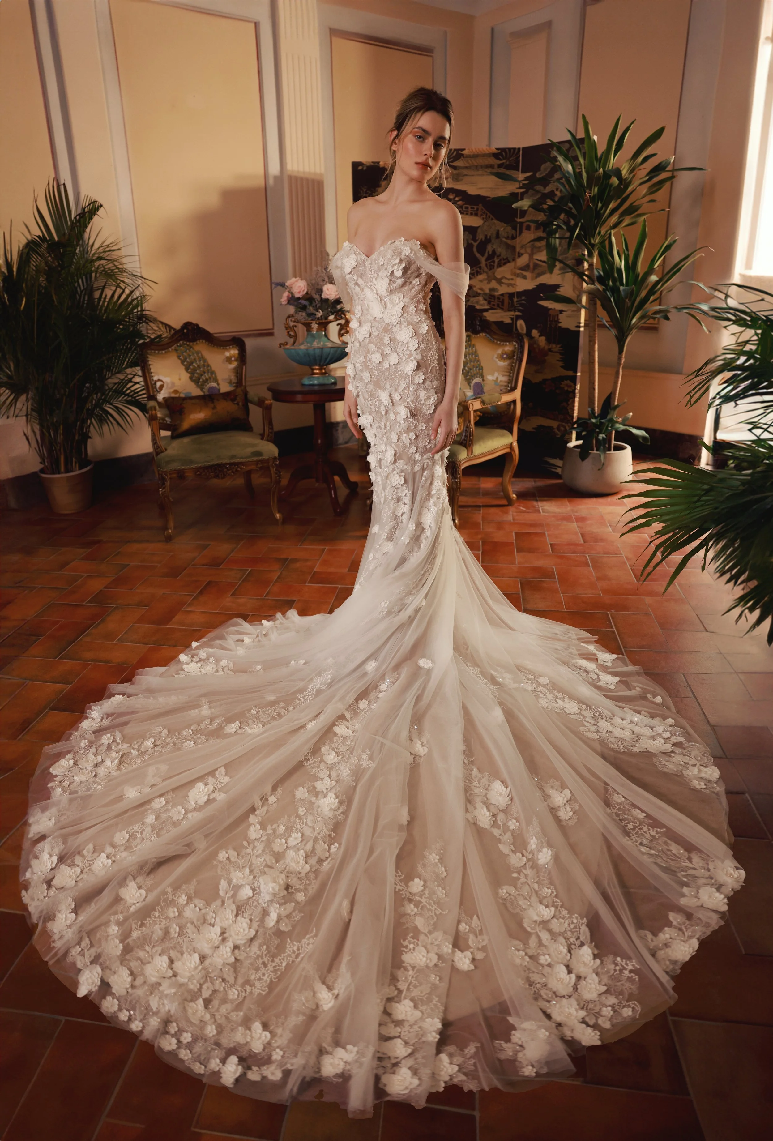 The Dany Tabet collection blends unique show-stopping elements with an ultra-flattering fit, making for the perfect dream dress. Each gown is made-to-order from luxurious laces, stunning beading and one-of-a-kind floral prints for a truly memorable look.